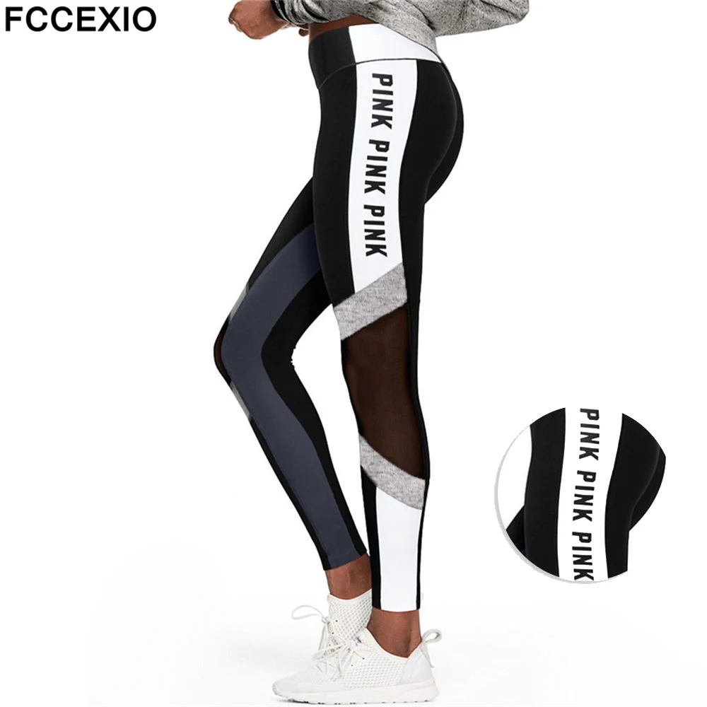 Discount FCCEXIO 2019 Women Love Pink Letter Print Workout Leggings Women High Waist Slim PINK Slim Fitness