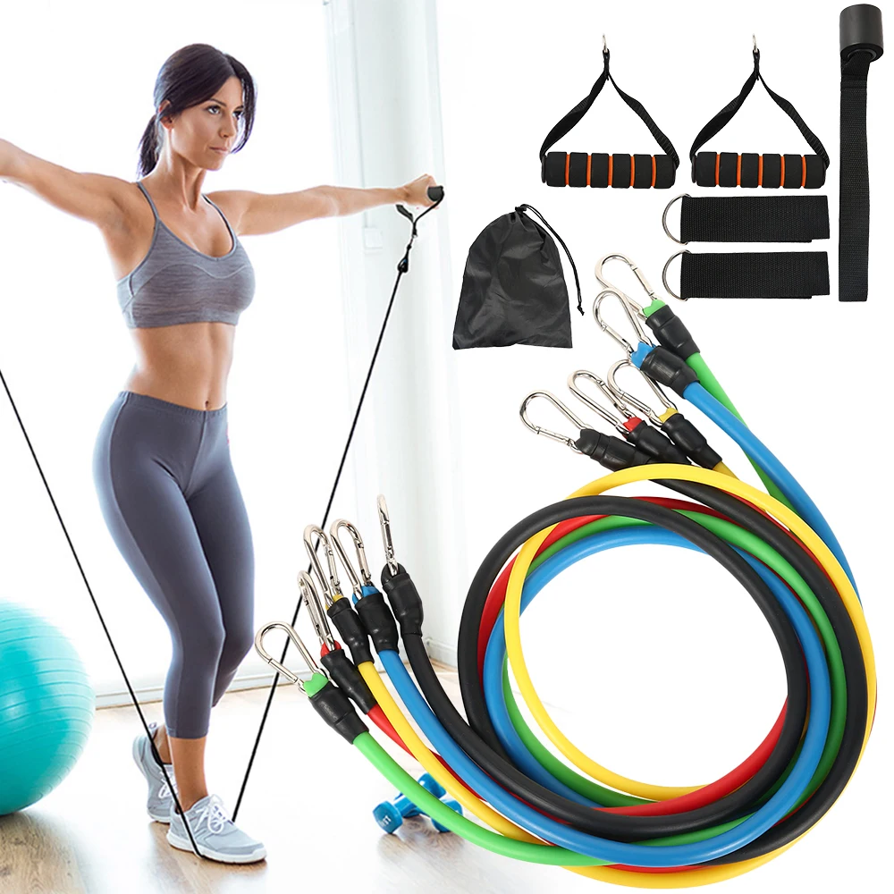 Refurbished 11pcs/ Set Pull Rope Latex Fitness Exercises Resistance Bands Elastic Exercises Body Fitness Workout Strength Gym Equipment